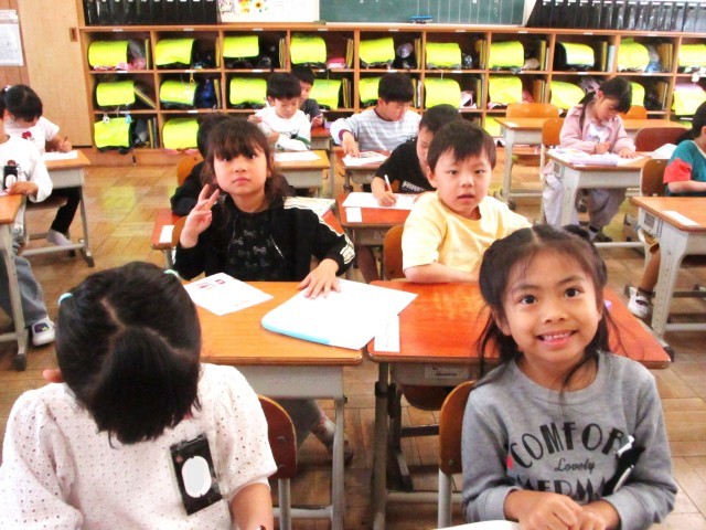 きょうは こま こけし こたつ こいのぼり などの 「こ」をならいました。