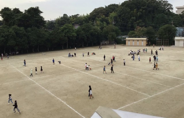 みんなのためにスポーツ委員などの委員会が運動会の準備をしています。スポーツ委員はラインを引いています。雨の中でも頑張っていて、とてもありがたいですね。