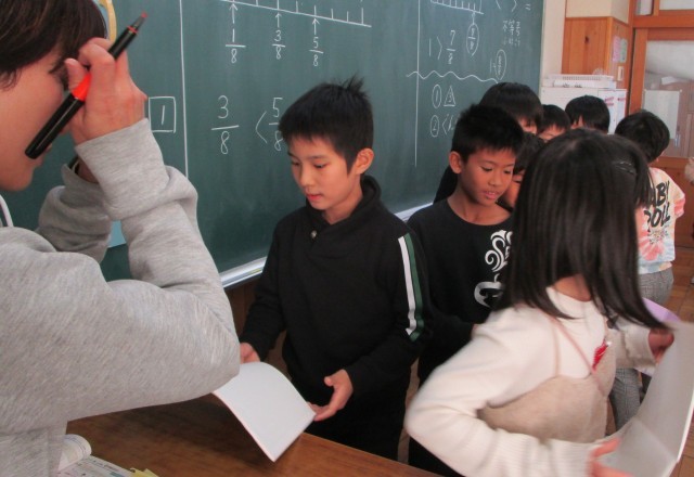 示された値が、数直線上のどの位置にくるのかを考え、確かめました。