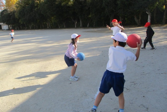 長なわとびしたりボール投げしたり、しっかり運動しています。