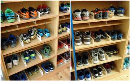くつ箱の様子です。上の写真のように、ほとんどの児童がきちんとそろっています。けれども下の写真のように、1,2足乱れているくつがあります。くつをそろえることは、気持ちを落ち着かせることにもつながります。これからきちんとそろえるようにしましょう。
