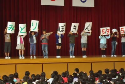 保健委員会は、三つの賞についての発表でした。緑化委員会は緑の羽募金の発表でした。しっかり発表できました。