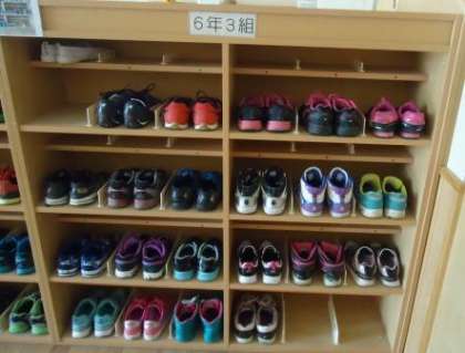 国語の授業を互いに助け合ったり、意見を交換し合いながらがんばっています。また算数では集中して問題をといています。そして下駄箱もしっかり整頓がされています。さすが6年生!!!