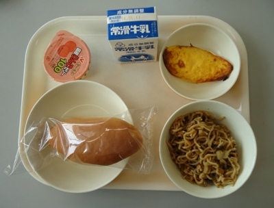 今日の給食は子どもたちの人気メニューの焼きそばです。