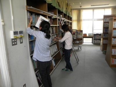今日は、図書館ボランティアの方々が来ていただき、図書館の本の整理をしていただきました。子どもたちが、本を探しやすく、楽しく読むことができるように活躍していただいている方々です。ありがとうございます。