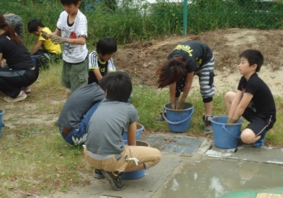 土をしっかりこねてつくります。なかなか大変でしたね。