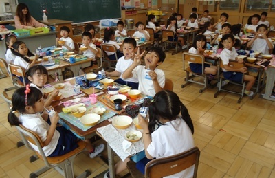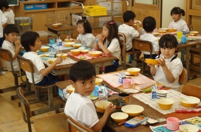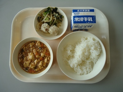 今日の給食のマーボー豆腐は子どもたちの人気メニューです。