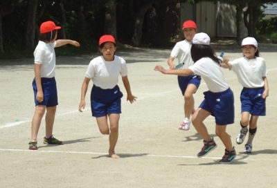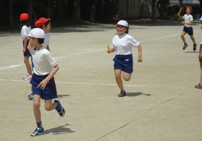バトンの受け渡しを練習してから行いましたが、本気で走るとなかなか上手にできません。これからもしっかり練習しましょう。
