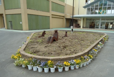 4月、パンジーやデージー、ワスレナグサ等がきれいに咲いていた花壇の花の片付けをしました。次は夏から秋にかけての花を植えます。どんな花が咲くか楽しみですね。