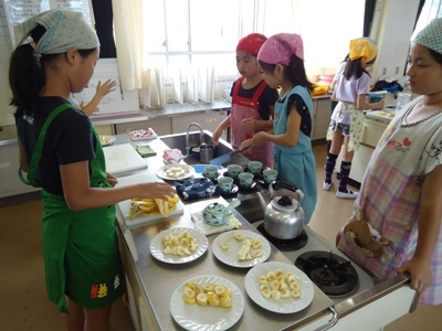 もう一つ、お茶を入れます。グループのみんなで協力して行っています。