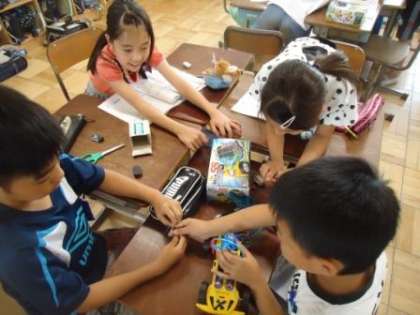 モーターを使って、電流の流れの学習をしています。難しいですが、おもしろいですね。