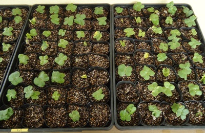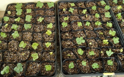 綿は、夏に花が咲きます。夏休みぐらいから咲き始め、9月も見ることができます。種まきした綿もたくさん芽を出しました。正門横の駐車場があるところに植えたいと思います。どのように育っていくのかぜひ観察してみてください。