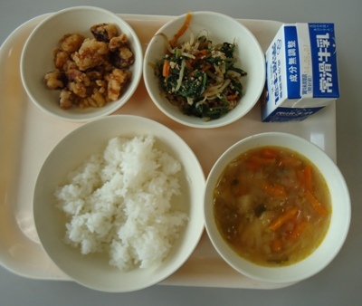 たこと大豆の唐揚げ、牛乳