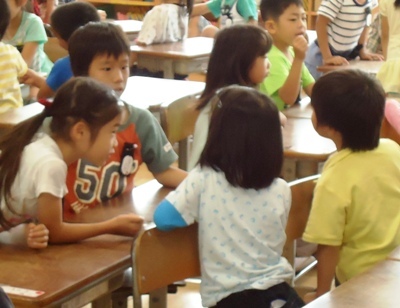 形の違いを学習してから、グループでかたちみつけをしました。いろいろな意見が出てきましたね。