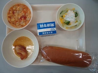今日はパンの給食でした。おいしく食べることができましたね。