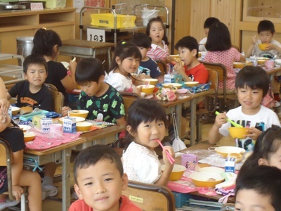 1年生の子どもたちも、しっかり食べていました。