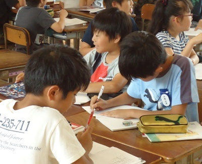 「アンケートの質問を決めて形式を相談しよう」をめあてに活動しています。グループでしっかり相談ができています。