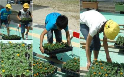 緑化委員会は、明日配布するマリーゴールドの準備をしました。