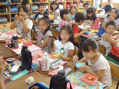 今日は台風で給食が中止となったのでお弁当を食べました。