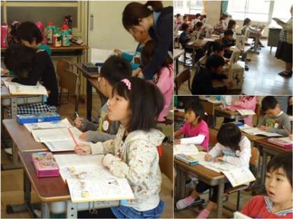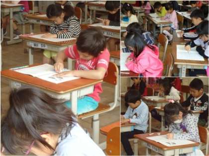 授業が始まりました。真剣に取り組んでいます。知能テスト、学力テストも行いましたね。また、身体計測、視力検査もありました。よく成長しましたね。目が悪くなった子はいなかったでしょうか。
