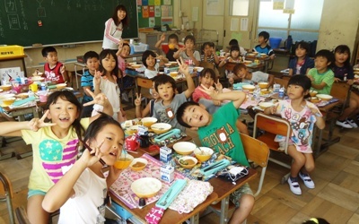 キュウリとツナのごま和え、一口ゼリー、牛乳