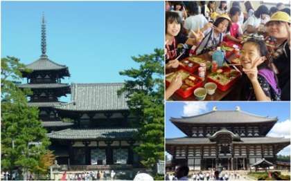 昨年度の法隆寺、東大寺、旅館の夕食、興福寺五重塔のライトアップです。