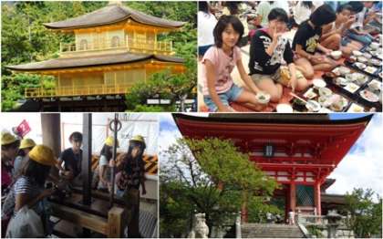 旅館での朝ごはん、金閣寺、体験学習、清水寺です。