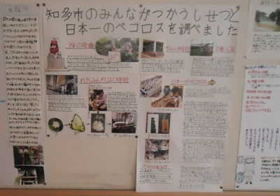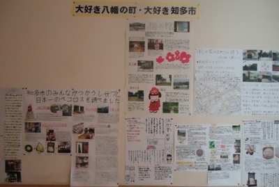 3年生の廊下に、「大好き八幡の町、大好き知多市」という掲示物が貼ってありました。一学期に調べた八幡の町、知多市について、まとめたものです。自分たちの住んでいる地域を知ることはとても大切なことです。そして、知ることによって、自分たちの住んでいる地域がもっと好きになれば、すばらしいことですね。