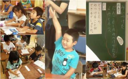 子どもたちの机の上には、必要なものしか出ていません。いろいろなものが出ていると集中できないからです。1年生も1時間集中してできるようになってきました。挙手、姿勢も素晴らしいですね。