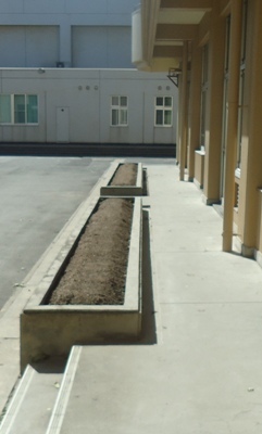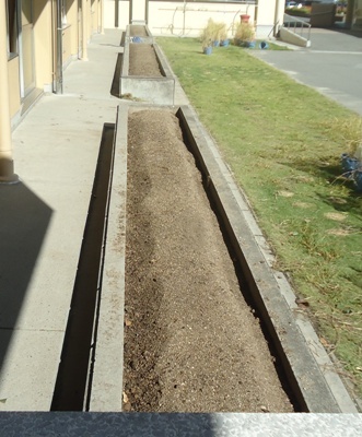 2年生教室南側の花壇に植えてあった野菜を取り除き、石灰を巻きました。