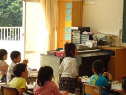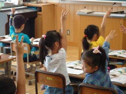 意見を発表すると、みんなが自分の考えをハンドサインでしらせています。