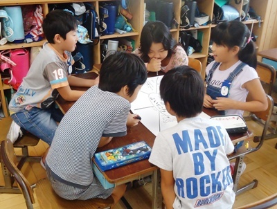 ドラえもんに出てくる、のび太、ジャイアン、しずかちゃんのよいところをグループで見つけました。いろいろな意見が出て、画用紙にたくさん書かれていました。ジャイアンを調べたグループで「優しい」と書いてあるのをみつけました。ジャイアンはただいじめてばかりいるのではなく、優しい面に気づくことができたのは素晴らしいですね。