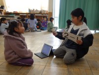発表する友達の方に体を向けている子もいますね。残念ながら下を向いている子もいました。みんなが発表者の方を向けるといいですね。