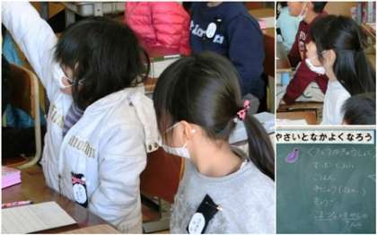 今日は4組で食の指導がありました。野菜のことを勉強しましたね。「ビタミン」という言葉が出てきました。びっくりでした。