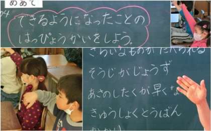 この1年でどれだけできるようになったでしょうか。「そうじができるようになった」「係の仕事をわすれずにできるようになった」「好き嫌いなく食べることができるようになった」「計算が速くできるようになった」「なわとびができるようになった」などなど、たくさんありましたね。発表会が楽しみですね。