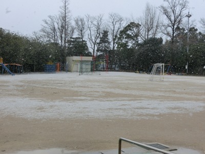 朝会が終わって、外を見ると、雪が舞っていました。短い時間でしたが、運動場もうっすらと雪化粧しました。びっくりしましたね。