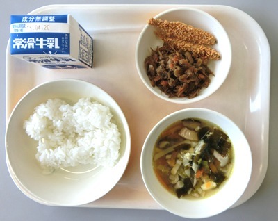 味噌きんぴらゴボウ、牛乳