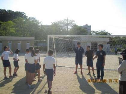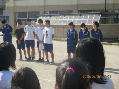 今日は八幡中学校陸上部の皆さんが来てくださり、教えてくださいました