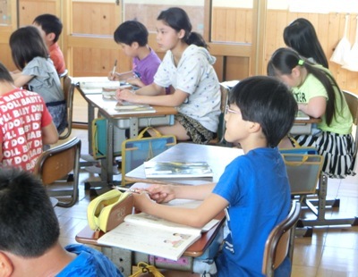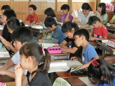 友達の発表もしっかり聞いて、自分の考えをノートに書いています。隣の子とも、自然に相談しています。学級の雰囲気がいいですね。