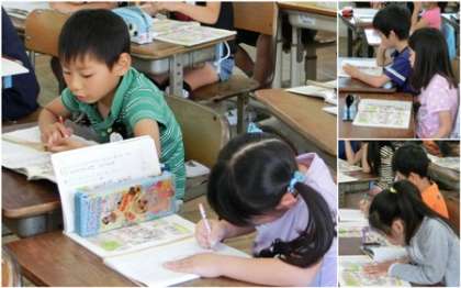 持っているもの、着ている服装等、その人の特徴がわかるものを入れて、放送で話すアナウンス文を考えます。楽しそうな内容ですね。