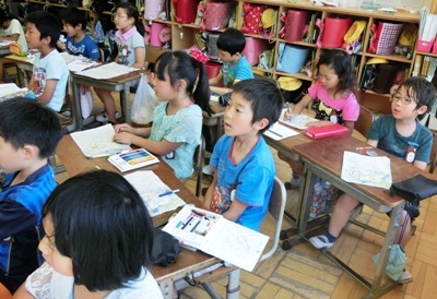 好天に恵まれ、子どもたちは校区探検に出かけました。