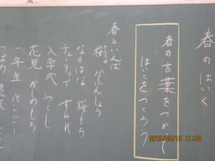 今日は、季節をあらわす言葉(季語)をみんなで考えていました。