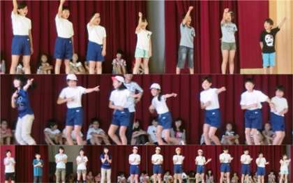 大放課に体育館で応援の練習をしました。