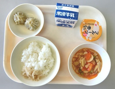 「パオズ」は「包子」とも書きます。中国の点心の一種です。「点心」は、「食事の間に少量の食物を食べること」なので、菓子や間食、軽食のたぐいはすべて点心と呼ばれるそうです。(ウィキペディアより)けれども、今日の給食のように、焼売のような形を思い出しますね。