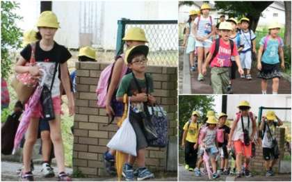 風が強いので、帽子が飛ばされそうになっている子もいましたが、子どもたちは、元気に登校してきました。