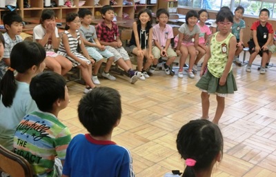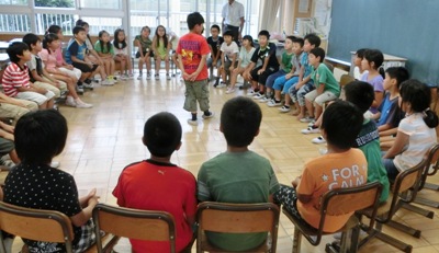 昨日、夏休みの生活については話がしてあるので、学級でレクリエーションをしているところがたくさんありました。運動場が使えないので、教室では、フルーツバスケットをしている学級がありました。