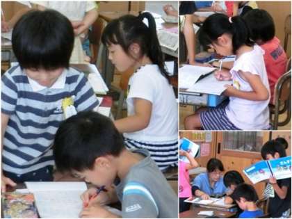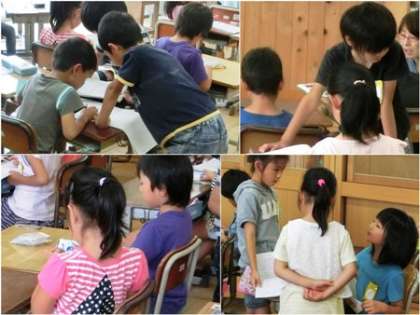 友達と一緒に答え合わせをしたり、教えあったりしています。