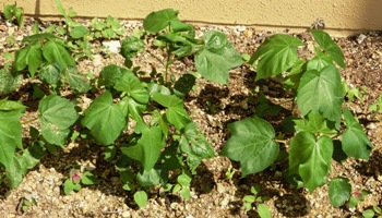 花壇に植えた綿が少しずつ大きくなってきました。
