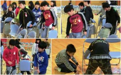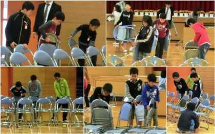 新しい6年生が体育館の準備や教室の準備に取り組みました。