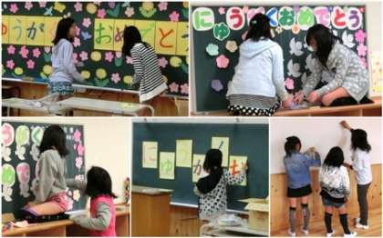 準備の後は、入学式のリハーサルです。準備が終わったすぐ後ですが、真剣に取り組んでいました。